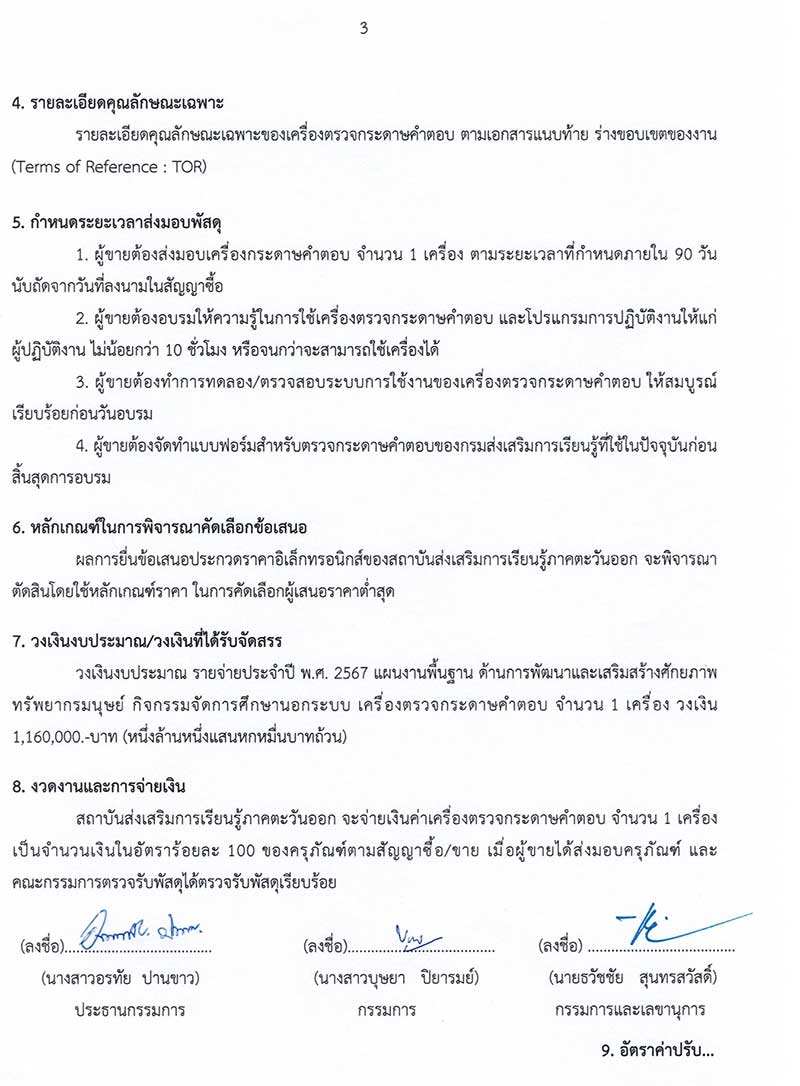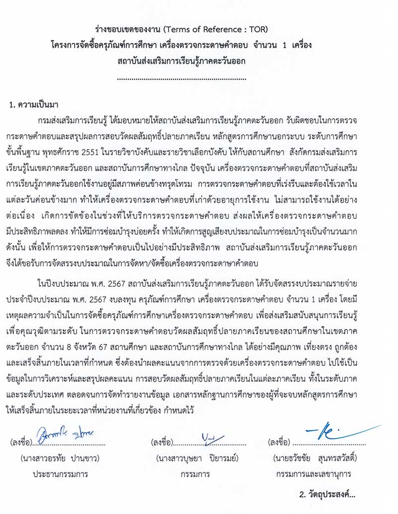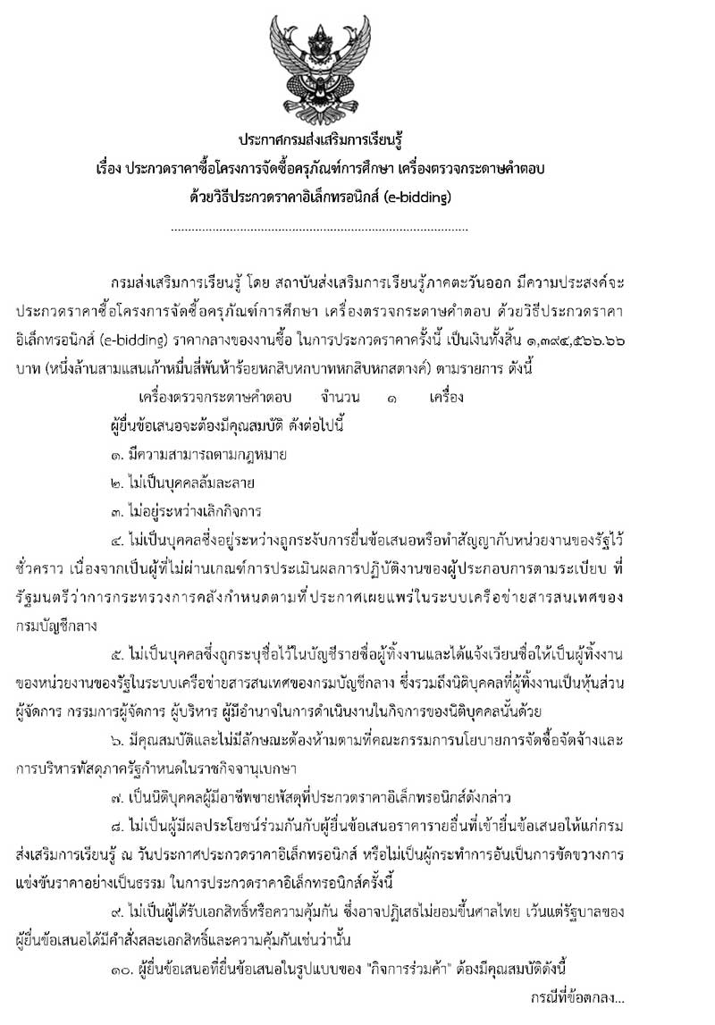 ประชาพิจารณ์ ประกวดราคาซื้อโครงการจัดซื้อครุภัณฑ์การศึกษา เครื่องตรวจกระดาษคำตอบ ด้วยวิธีประกวดราคาอิเล็กทรอนิกส์ (e-bidding)