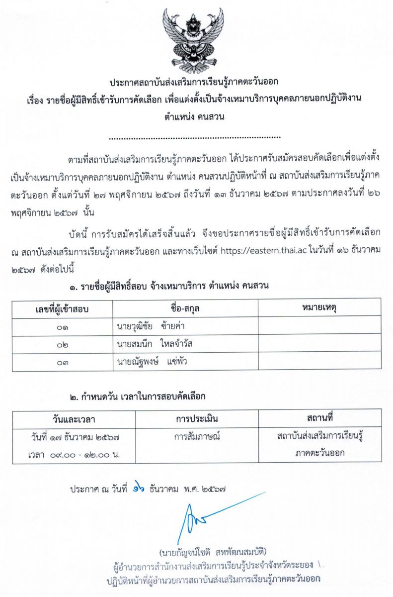 ประกาศรายชื่อผู้มีสิทธิ์เข้ารับการคัดเลือกจ้างเหมาบริการบุคคลภายนอกปฏิบัติงาน ตำแหน่ง คนสวน