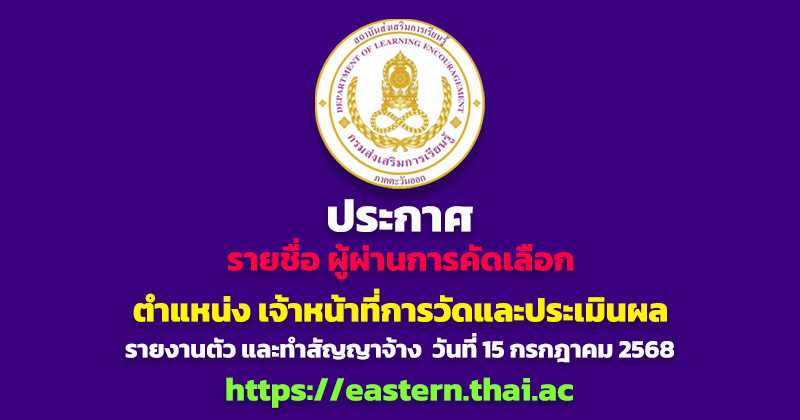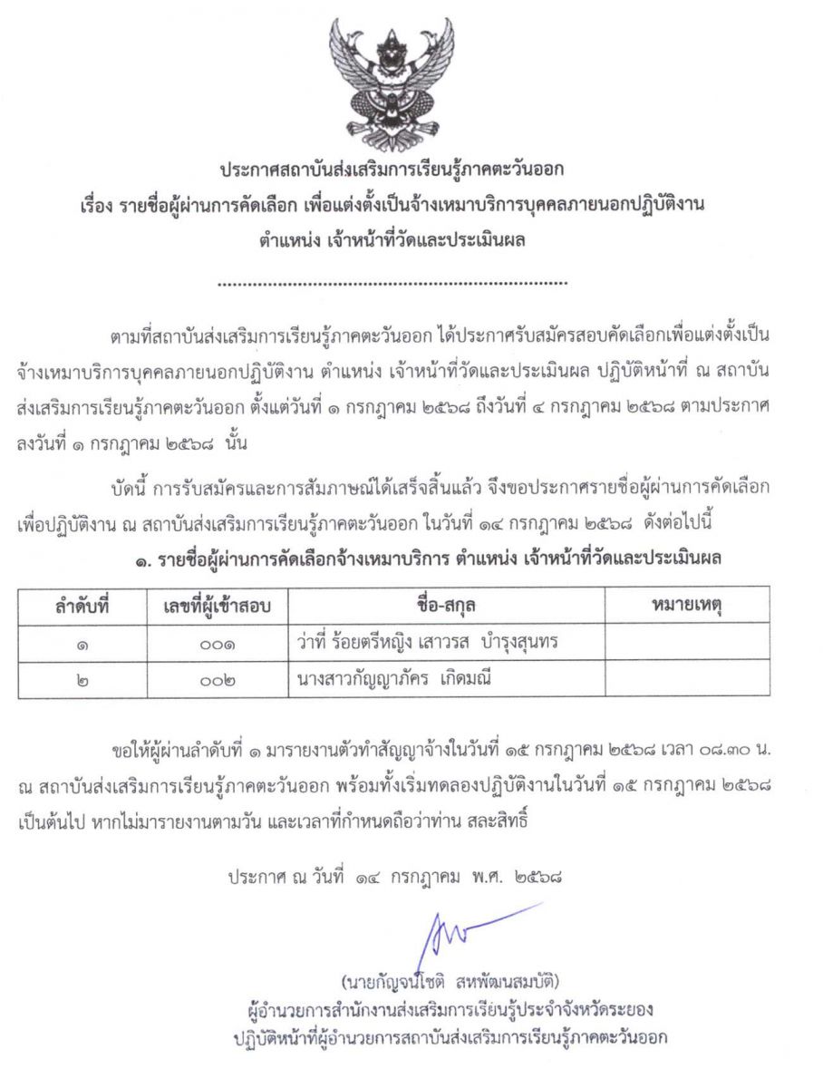 ประกาศรายชื่อผู้ผ่านการคัดเลือกจ้างเหมาบริการ ตำแหน่ง เจ้าหน้าที่วัดและประเมินผล