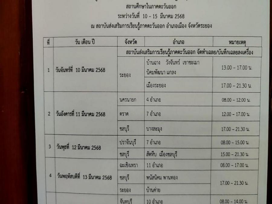 แผนการตรวจกระดาษคำตอบการสอบวัดผลปลายภาคเรียนที่ 2 ปีการศึกษา 2567 ของสถาบันส่งเสริมการเรียนรู้ภาคตะวันออก S:0